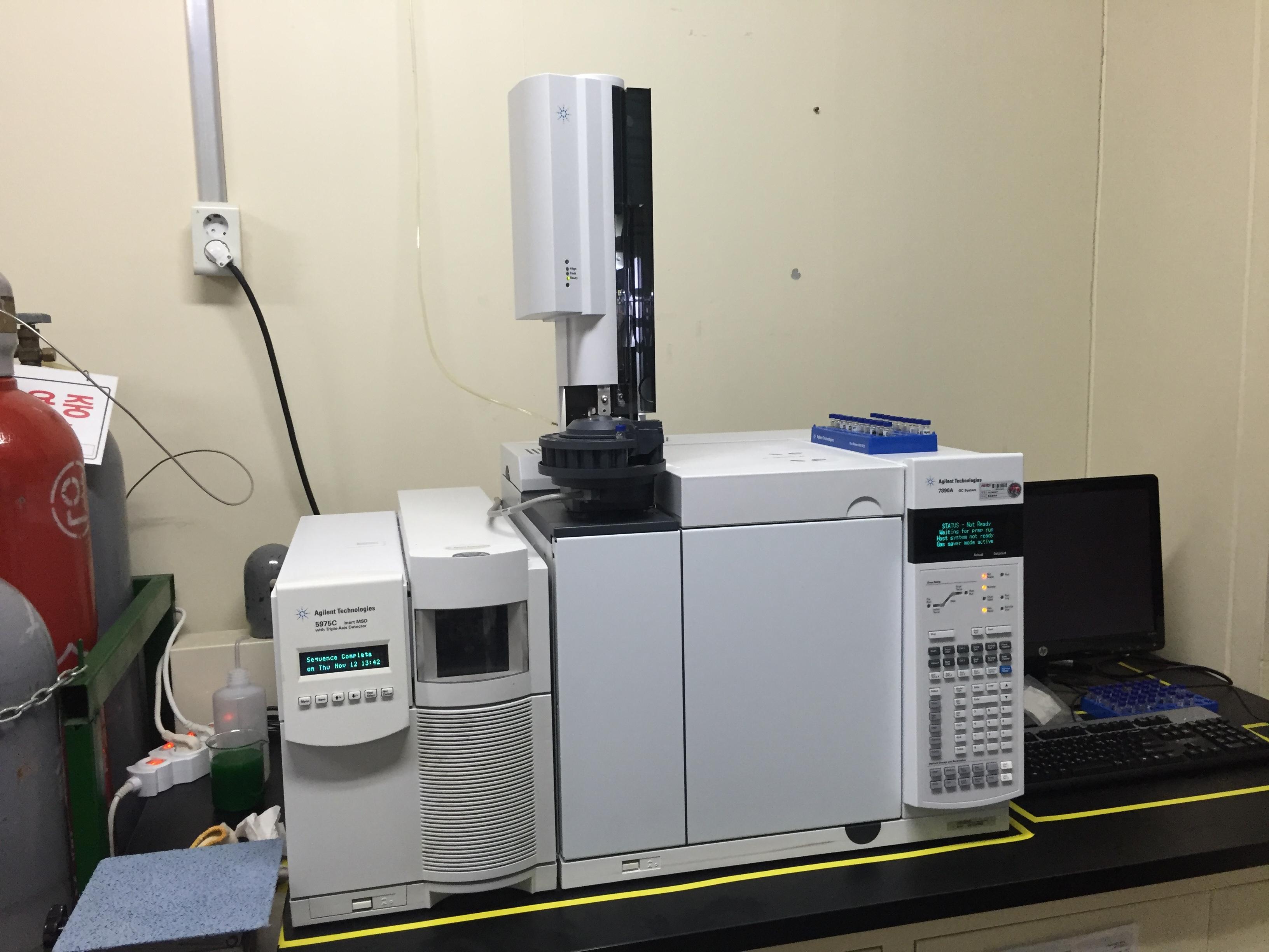 | 구성 및 기능 | TCD,FID 검출기가 있는 7890A GC와 5975C MSD로 구성되어 있다. 이 밖에도, 다수의 시료를 항상 동일한 조건에서 자동 분석할 수 있게 하는 Auto sampler등의 악세서리가 연결되어 있다. | ||