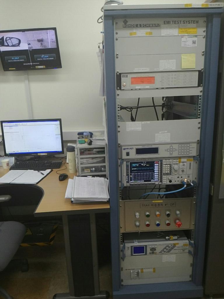 - EMI Receiver (ESU26) * RE : 30MHz ~ 18GHz * CE : 150kHz ~ 30MHz * 챔버구성 - 10m 전자파무반향실 - 3m 디버깅챔버 (Anechoic Shield Room) - Shield Room - Amp. Room - Control Room 등 * RE Triple Loop Antenna (as per CISPR 11 and 15) * RE Loop Antenna (as per CISPR 11) * Discontinuous Disturbance Measurement : Click * EM Clamp (as per CISPR 14-1) * Dummy Lamp (as per CISPR 15) * ENY (as per CISPR 22) * Car Component Test (CISPR 25) |